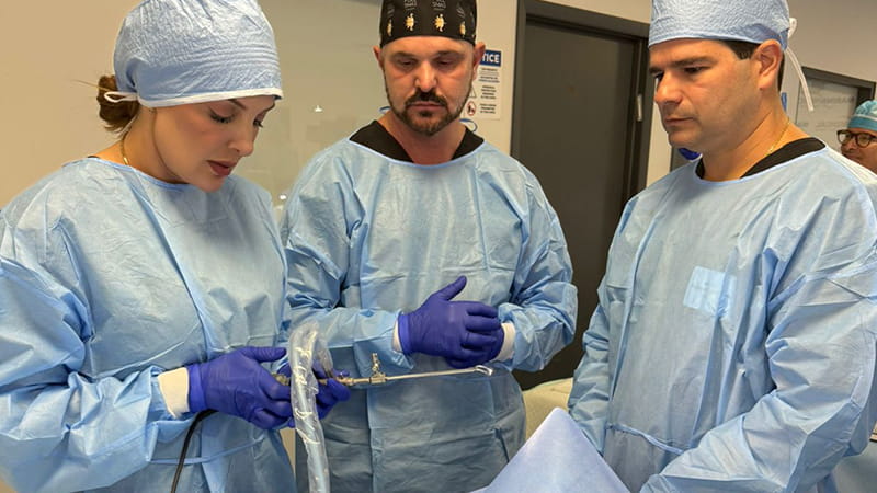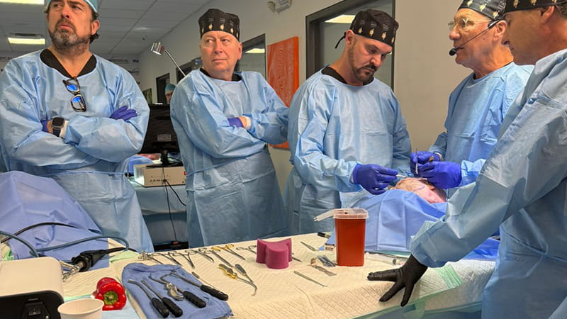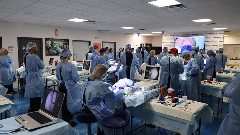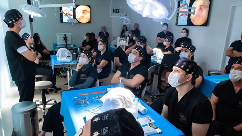 “Um treinamento bem completo com estudo profundo anatômico em cadáveres frescos e no dia seguinte com várias práticas cirurgias ao vivo”